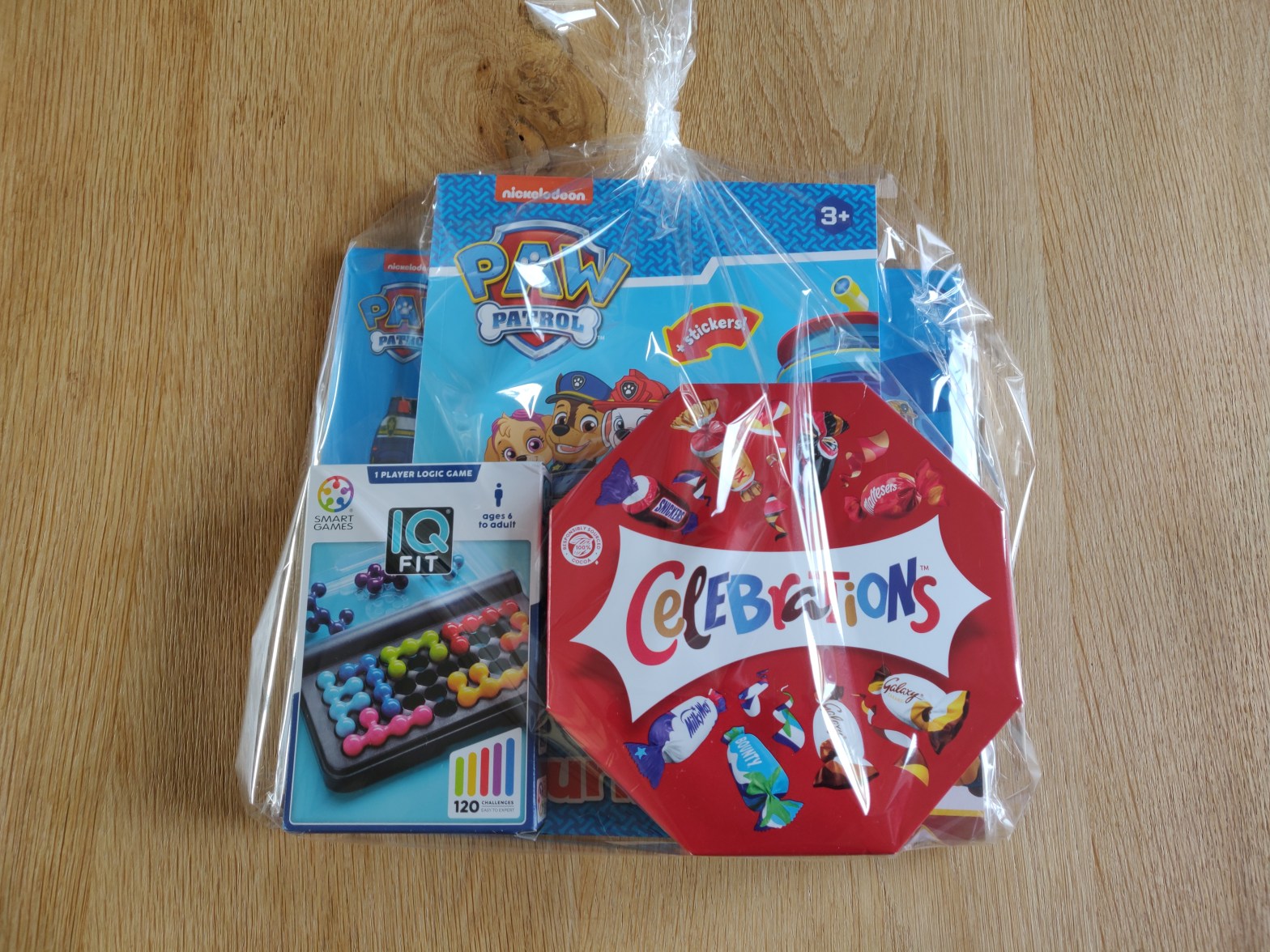 V Een traktatie die wel vaker gegeven wordt. Een doosje celebrations. Altijd goed.
